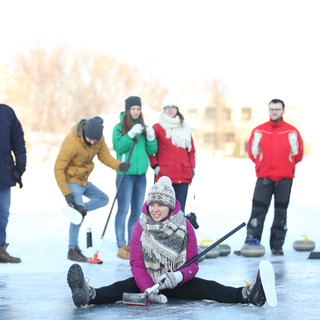 От себя скажем, что играть в керлинг было очень весело! Оказалось, что не все так просто, ведь нужно держать равновесие, пытаться докинуть "камень" (а он весит 19,6 кг!) до "дома", да ещё и не поскользнуться (хотя падать тоже было забавно :) ) В любом случае, приходите на открытые занятия, не пожалеете! И как сказал нам Франц: "Все получится, стоит только захотеть" :)